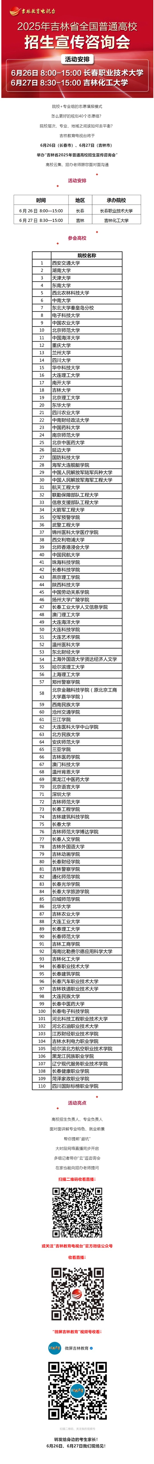 @高考生 吉林2025“高招會”來啦,6月26日、6月27日在長春、吉林兩地舉行