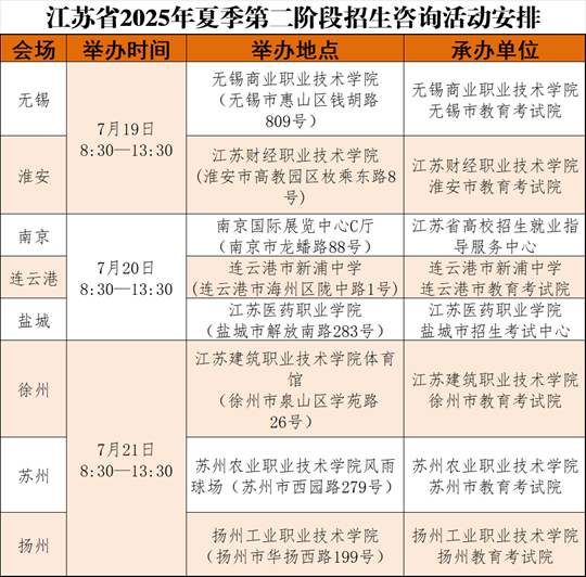 江蘇省招就中心主辦的江蘇省2025年夏季第二階段招生咨詢活動(dòng)安排