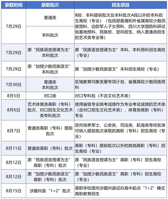 7月29日—8月15日錄取日程安排表