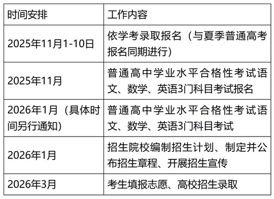 現就做好我省2026年高職院校依據普通高中學業水平考試成績招生錄。ㄏ路Q依學考錄取)工作通知如下: