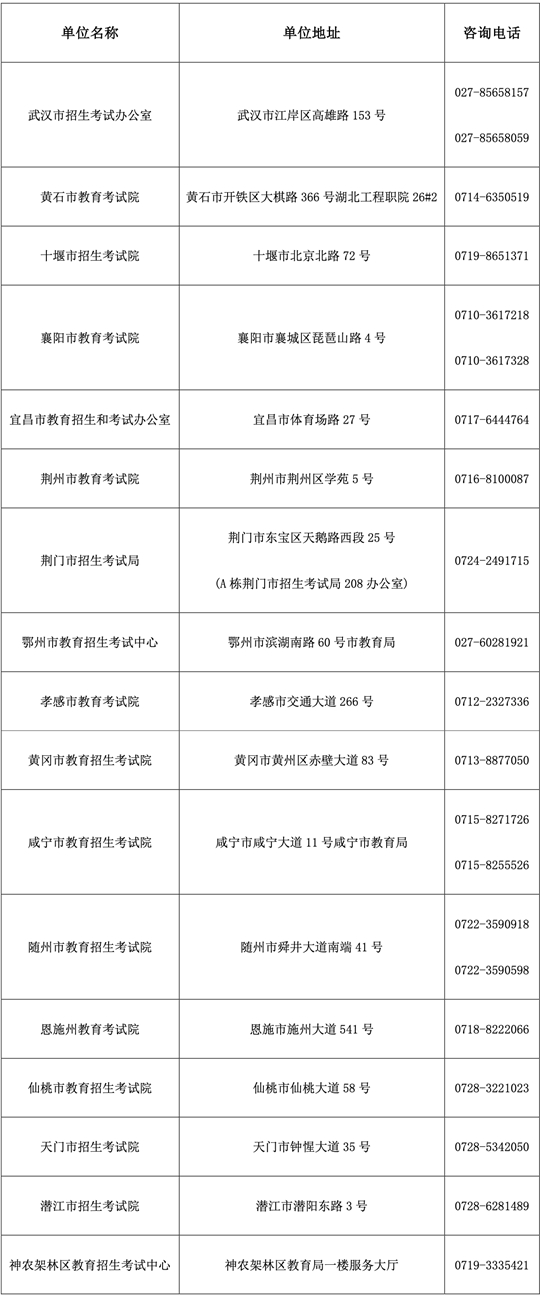 備注:報名期間,各縣(市、區)教育考試機構接受考生咨詢與服務,考生可登錄各市州教育考試機構官網或致電市州教育考試機構查詢了解咨詢電話。
