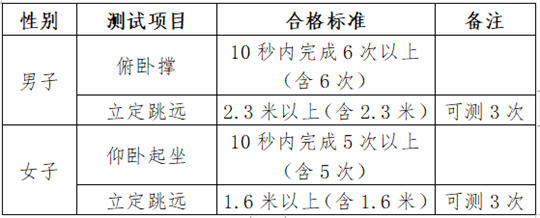 6.體能測試項目及合格標準: