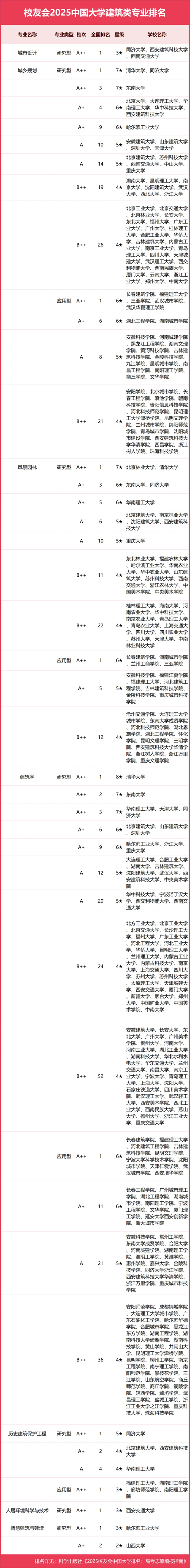 | 校友會2025中國大學建筑類專業(yè)排名,清華大學、吉林建筑科技學院第一 |
