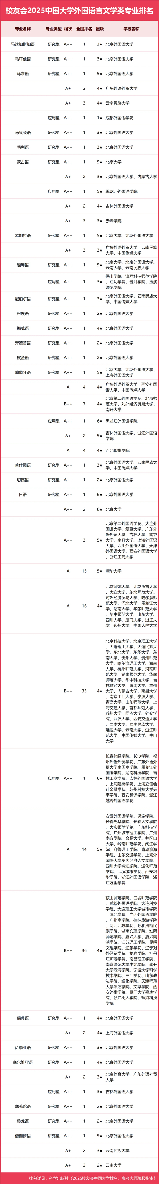 校友會2025中國大學外國語言文學類專業排名(應用型)