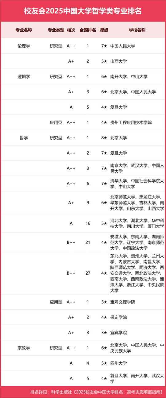 | 校友會2025中國大學哲學類專業排名,北京大學、貴州工程應用技術學院第一 |