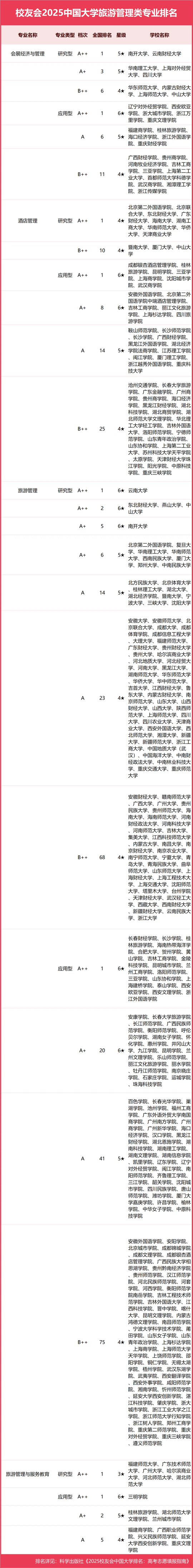| 校友會2025中國大學旅游管理類專業排名,云南大學、泰山學院第一 |