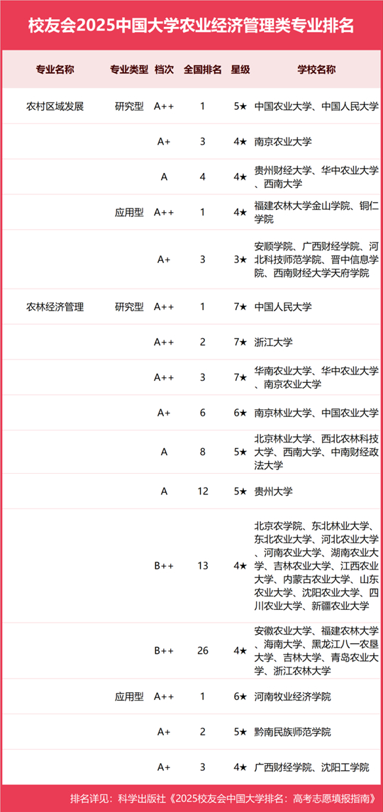 校友會(huì)2025中國(guó)大學(xué)農(nóng)業(yè)經(jīng)濟(jì)管理類專業(yè)排名(研究型)