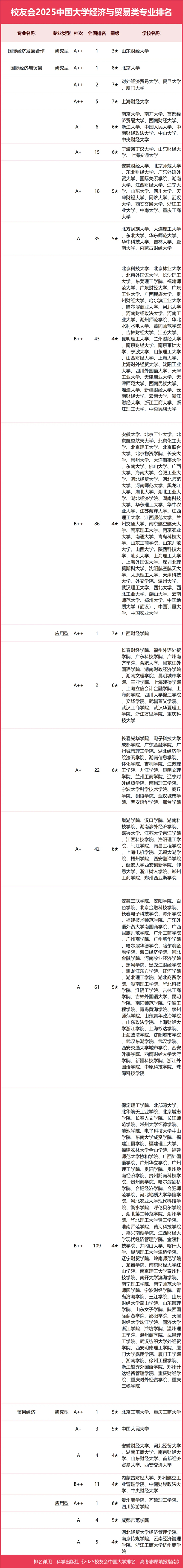 | 校友會2025中國大學經濟與貿易類專業排名,北京大學、 廣西財經學院第一 |