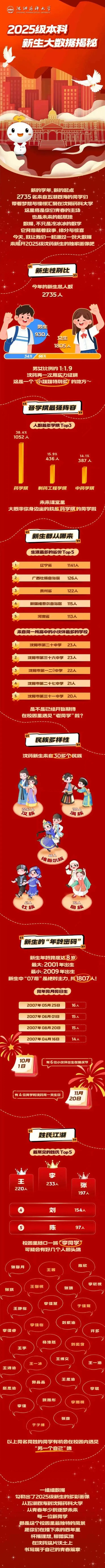 沈陽藥科大學(xué)2025級本科新生大數(shù)據(jù)揭秘