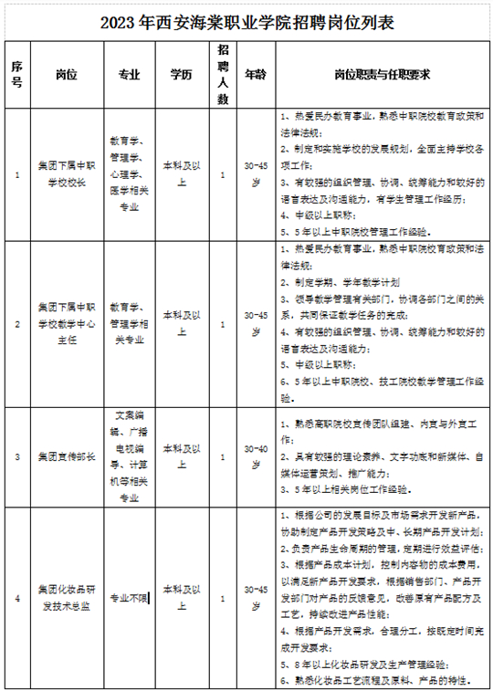 | 西安海棠職業(yè)學(xué)院2023年招聘公告 |