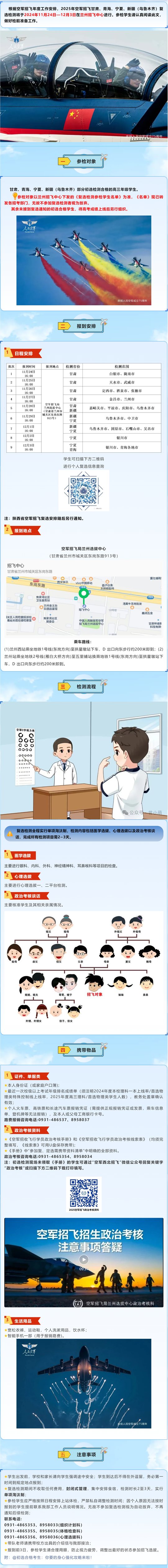 2025年空軍招飛甘、青、寧、新四省(區(qū))復選檢測安排
