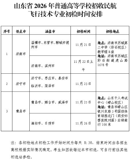 | 中國民航大學(xué):山東地區(qū)2026年招飛預(yù)選初檢日程安排 |