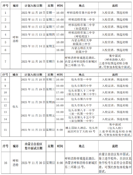 2.未參加入校預選初檢的考生,需按照規定預約參加國航招飛辦公室組織的內蒙古自治區集中面試(包含預選初檢、飛行職業能力傾向測試、英語測試、面試等項目),具體日程安排詳見本簡章“四、初檢面試安排”中“(一)日程安排”的第16條。