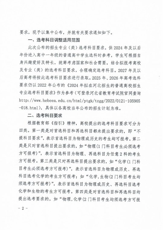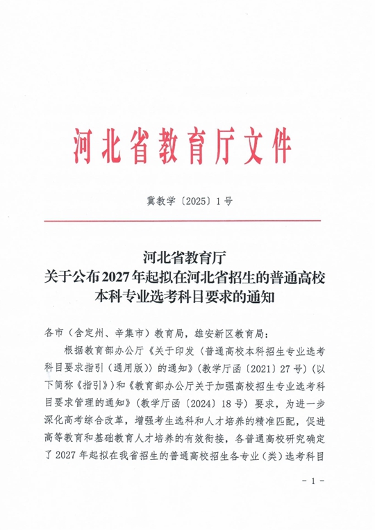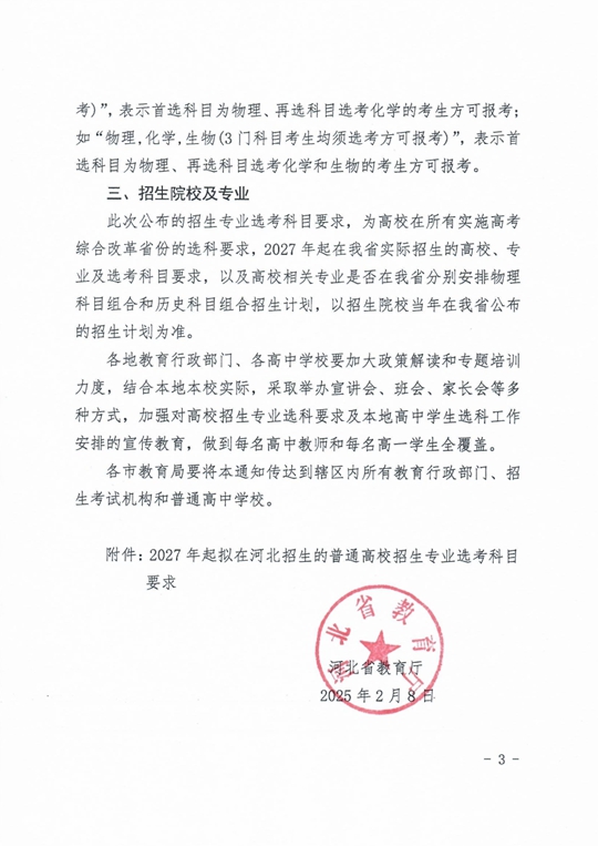 關(guān)于公布2027年起擬在河北省招生的普通高校本科專業(yè)選考科目要求的通知