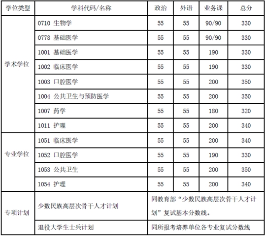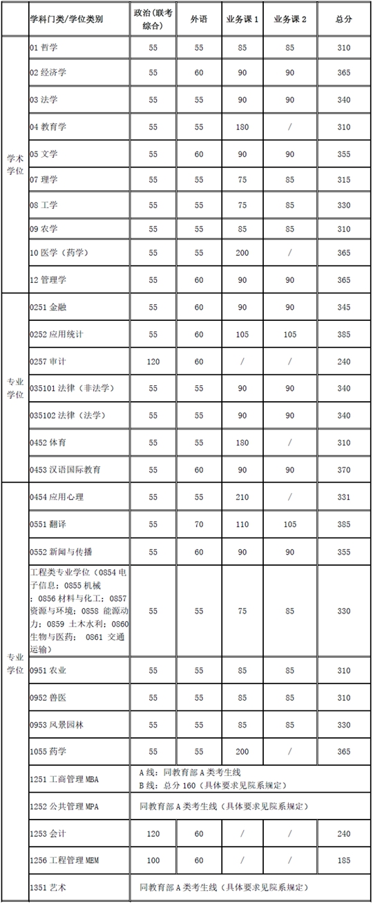 根據教育部有關文件精神,結合學校實際情況,經校研究生招生領導小組會議研究決定,2020年碩士研究生入學考試復試基本分數線如下: