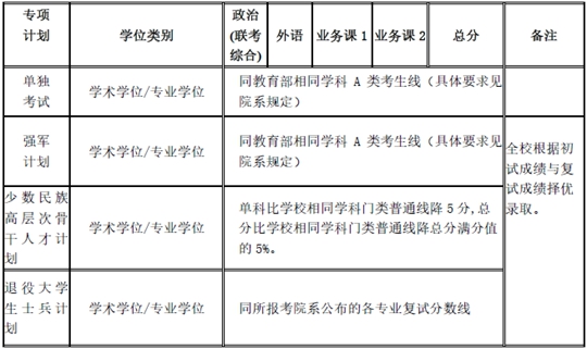 注:1、各院系按照不低于學校復試基本分數線的要求,根據招生名額和考試情況差額確定復試分數線和進入復試的考生名單,公開、公平、公正地組織復試與擬錄取工作,堅持保證質量、寧缺毋濫的原則對考生進行德、智、體全面考察。