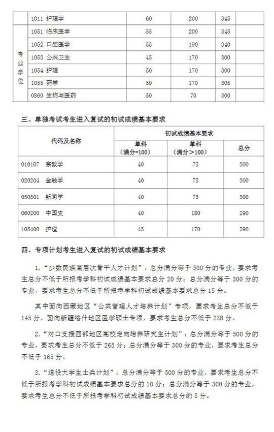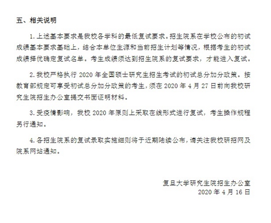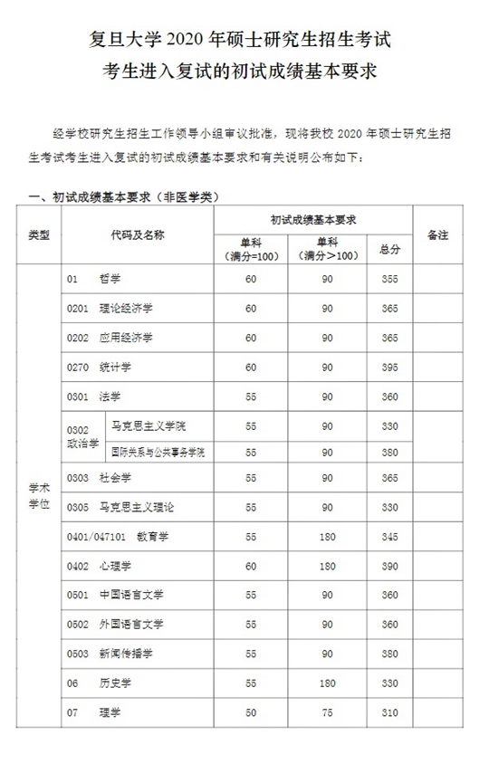 復(fù)旦大學(xué)2020年碩士研究生招生考試考生進入復(fù)試的初試成績基本要求