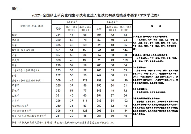 | 《2022年全國碩士研究生招生考試考生進入復試的初試成績基本要求》(國家分數(shù)線) |