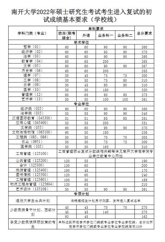 | 南開大學2022年碩士研究生考試考生進入復試的初試成績基本要求(學校線) 點擊查看