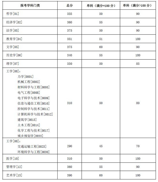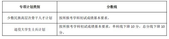 1.以上為考生進入我校復試的初試成績基本要求,各學院可根據招生計劃、生源情況、學科專業特點等,向上調整復試分數線。