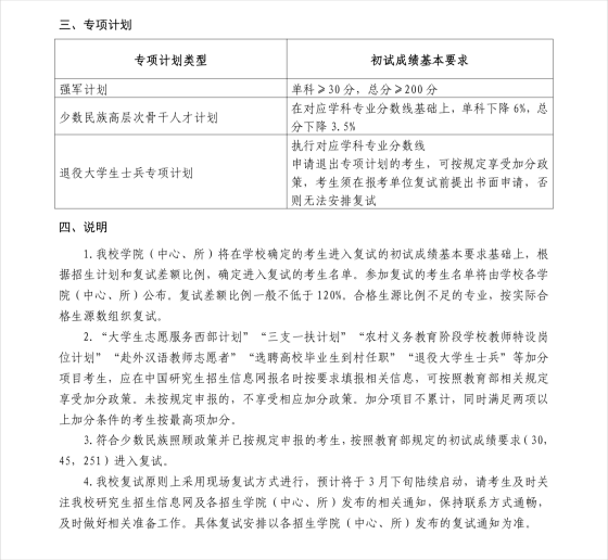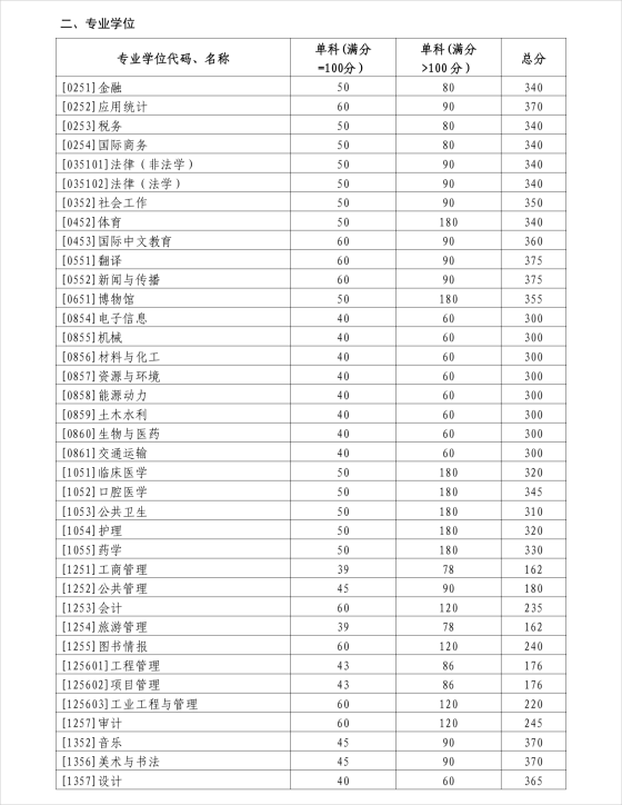 山東大學2024年碩士研究生招生考試考生進入復試的初試成績基本要求
