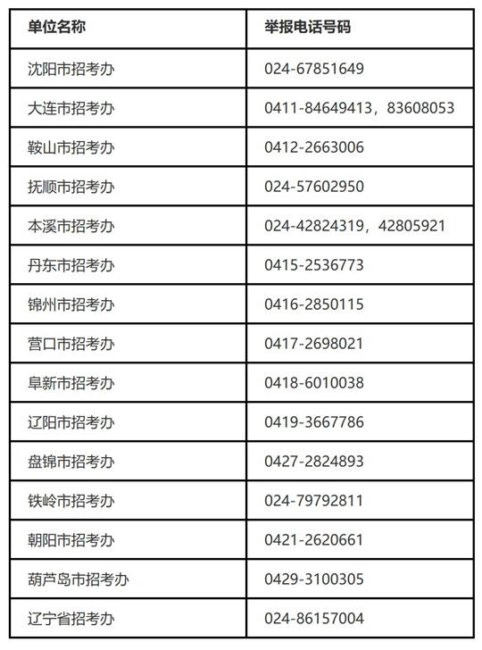 | 遼寧省2026年全國碩士研究生招生考試舉報(bào)電話 |