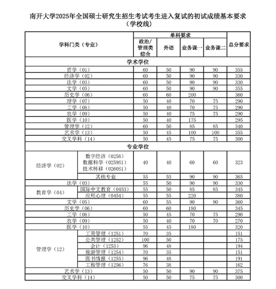| 南開大學2025年全國碩士研究生招生考試考生進入復試的初試成績基本要求(學校線)公布 |