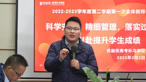 為了促進教學質量穩步提升,明確新學期教學教研目標,2月3日晚,優益優高考補習學校2022-2023學年度第二學期第一次全體教師會成功舉行。