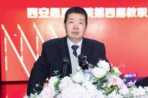 西安思源學院黨委書記馬勇致開幕詞,向本次代表大會的勝利召開表示熱烈祝賀,向廣大教職工和與會代表表示誠摯的問候和美好的祝愿。他指出,“雙代會”是教職工民主參與學校管理、協商學校重大事項的重要形式,是教職工政治生活中的一件大事。希望與會代表深入學習黨的十九屆五中全會精神,結合學校實際和我國未來發展趨勢,統籌思考,科學研判,圍繞主題,積極獻計獻策,為高質量制定學!笆奈濉币巹澓2035年遠景目標貢獻智慧;要始終把學習作為人生中最重要的議題,做到學無止境,常學常新,只有這樣才能完成好教育工作者為黨育人,為國育才的初心使命;要充分發揮“雙代會”的橋梁紐帶作用,緊密團結共同努力,形成團結和諧,昂揚向上的工作生活氛圍,乘勢而為,迎難而上,共克時艱,再創輝煌。