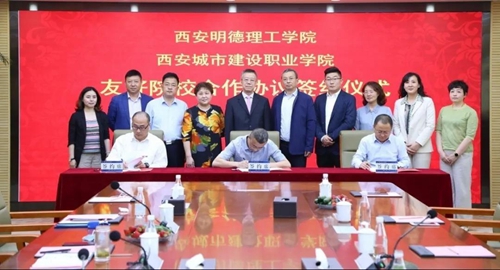 2020年4月30日,西安城市建設職業學院與西安明德理工學院(原西北工業大學明德學院)簽訂友好院校合作協議。陜西金葉科教集團股份有限公司【深市上市公司,證券代碼000812】是西安明德理工學院舉辦者,同時也是城建學院的管理機構。合作協議的簽署,是實現兩院之間專業共建、資源共享、人員和責任優勢互補的重要體現。通過合作,未來明德學院與城建學院就師資力量、人員交流、教育教學、學生管理、招生就業等方面將建立更加密切的合作關系,為實現兩院之間資源共享,協同發展,推進兩院各自的提升打好了基礎。陜西金葉科教集團股份有限公司對兩所院校的整合,率先走出了產學研一體化的特色辦學之路,探索構建產學研相結合的辦學模式,推動了兩所學校的發展,形成了人才培養、科學研究、產業發展的良性循環。為城建學院轉型升級注入了新的活力,為城建學子的就業搭建了一座“跨海大橋”。