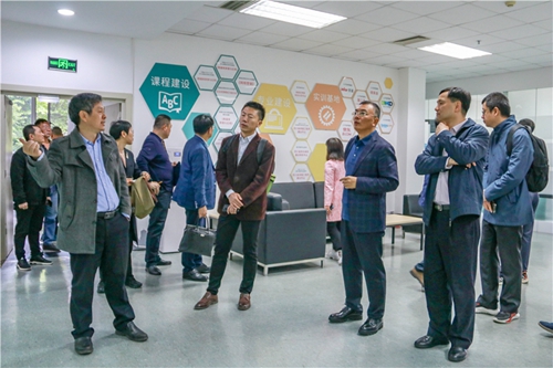 在座談會后雙方前往學(xué)校展廳、數(shù)字藝術(shù)系工作室、實驗實訓(xùn)中心、SOVO大學(xué)生創(chuàng)業(yè)中心等地進行實地考察,并在參觀過程中交流了經(jīng)驗和意見。