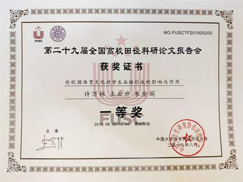 體育學院許萬林院長的論文獲全國科報會一等獎