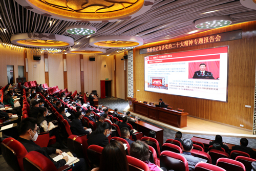 “黨的二十大具有重大的現實意義和深遠的歷史意義。”杜小明指出,第一,大會召開的時間節點和時代背景非常重要而特殊;第二,黨的二十大充分彰顯了“兩個確立”的決定性意義;第三,黨的二十大取得了一系列具有長期指導意義的重大理論和實踐創新成果;第四,黨的二十大科學回答了“以黨的自我革命引領社會革命”這一重大歷史命題。他提出,學習領會黨的二十大精神必須堅持全面準確,深入理解內涵,精準把握外延,著重把握“深刻領會黨的二十大的主題”“深刻領會過去5年的工作和新時代10年的偉大變革”“深刻領會開辟馬克思主義中國化時代化新境界”等九個方面的內容。