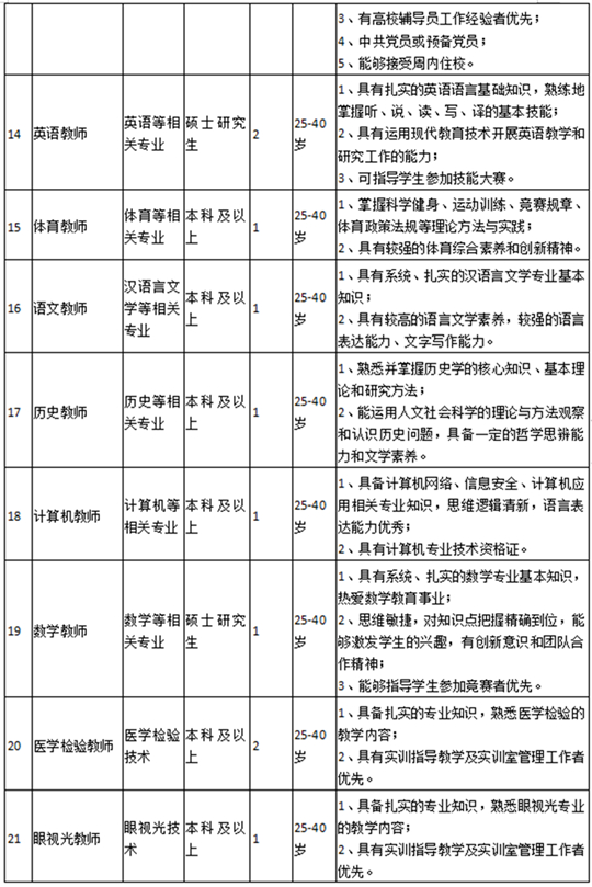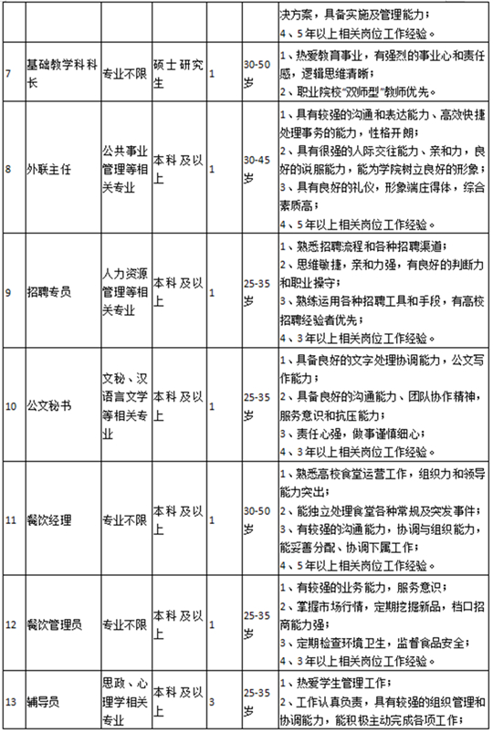 二、因?qū)W院發(fā)展需要,現(xiàn)面向社會公開誠聘教師及行政管理人員,具體如下: