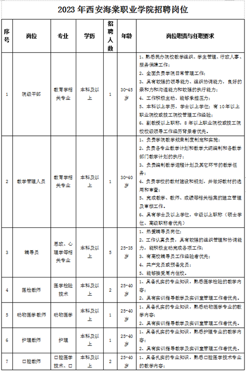 | 西安海棠職業(yè)學院2023年招聘公告 |