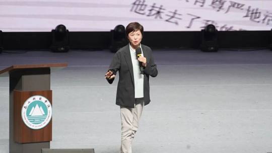 作為“末代工農(nóng)兵學(xué)員”,她回溯1978年的求學(xué)記憶,并將此與著作《我 末代工農(nóng)兵學(xué)員》中的青春記錄相結(jié)合?吹匠瘹馀畈奶┛茖W(xué)子,她聯(lián)想到自己少年時(shí)拘謹(jǐn)、僵硬的學(xué)習(xí)生涯。這段跨越時(shí)代的對比,以其個(gè)人經(jīng)歷為切口,引發(fā)了在場師生對人生與時(shí)代的深刻思考,令人動容。