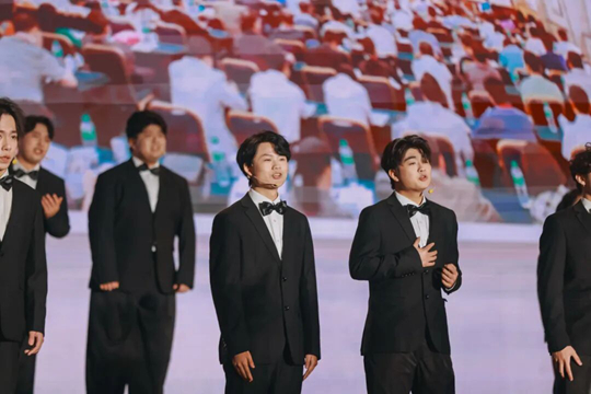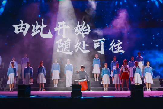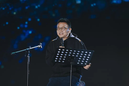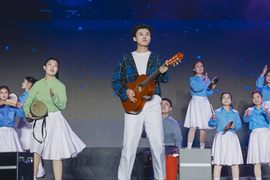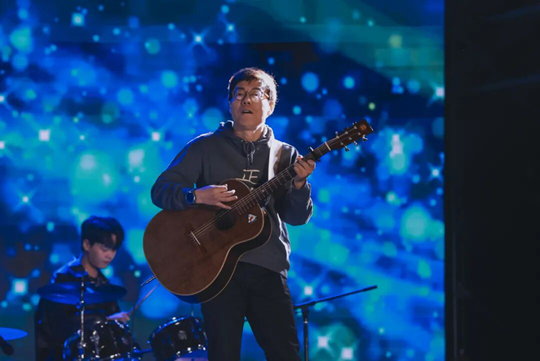 隨后,胡建波和副校長李正、吉他社的同學一起,演唱了影響一代人的搖滾金曲《藍蓮花》,用音樂致敬30年的青春。歌聲響起,燈光星海閃爍。那一刻,音樂不再只是旋律,而是一種力量——來自歐亞的信念與精神。歌聲穿越時間,連接了30年的追夢者,也照亮了此刻的青年面龐。