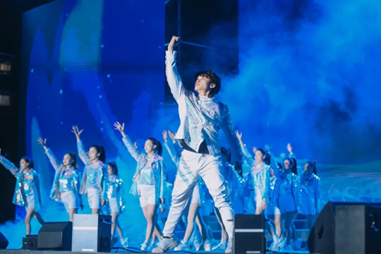 “希望你們像我一樣,沒有什么能夠阻擋!毖莩猜暎úㄕZ氣堅定而溫柔,希望同學們跳出舒適區,勇敢去做自己。當晚,演唱視頻在社交網絡上迅速出圈,并一度登上微博同城熱搜榜第一名。