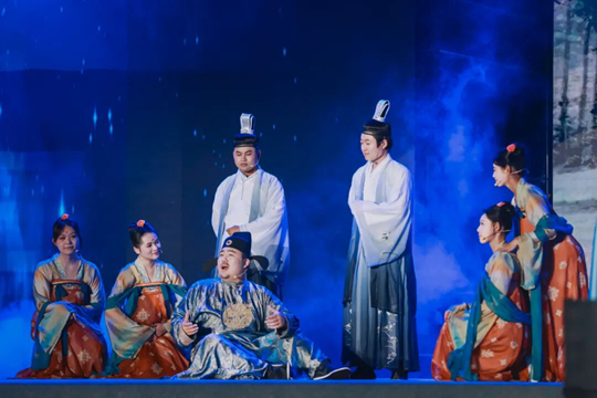 “唐詩里的長安,是朝思暮想,也是蕩氣回腸……”話劇團表演者衣著漢服,借現代話劇的敘事語言,探索長安這片與歐亞共生的土壤,拾起古人對世界的感知以及生活的熱愛。