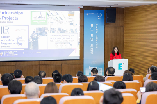 英國伯明翰大學學院工程、數字與可持續建筑學院執行院長Rosa Wells教授率先分享了英國高校的實踐經驗。她強調,該校以“產業需求驅動課程設計”為核心原則,通過組建產業合作委員會、參與政府資助的技能缺口調研項目,確保課程內容與技術發展同步!拔覀兇蛟炝斯I4.0學習工廠、電池制造技能培訓等特色實踐平臺,讓學生在跨專業協作與模擬職場場景中提升實操能力。”Wells特別提到,學校通過“雙向指導”模式,既推動博士生協助教師掌握前沿技術,也促進教師在學術上支持博士生成長,實現教學相長。