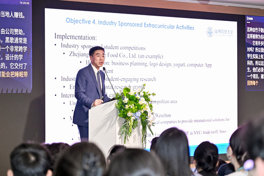 溫州肯恩大學學術事務副校長楊毅欣教授結合中美合作辦學經驗,闡述了產學研深度融合的育人路徑。他介紹,溫肯每年組織30至40次企業走訪,與Apple、華大基因等48家知名企業建立了合作關系,將真實產業項目融入課堂教學。“我們開設了跨學科的‘人類壓力測試與評估’課程,舉辦24小時企業贊助的黑客松競賽,讓學生在解決實際問題中培養創新能力!睏钜阈缽娬{,通識教育是培養學生批判性思維的關鍵,溫肯設置的45學分通識課程占總學分三分之一,并實現AI通識課程全覆蓋,以助力學生適應智能時代的發展需求。