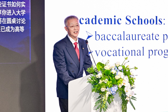 10月18日下午在圖書館報告廳舉行的共生·共創·共成長——產教融合、協同育人論壇,邀請了英國伯明翰大學學院副校長,工程、數字化與可持續建筑領域執行院長Rosa Wells,北京大學教育學院院長閻鳳橋,北京大學中國教育財政科學研究所所長王蓉,蘭州大學高等教育研究院院長盧彩晨,中國新高教集團董事長李孝軒,廈門南洋職業學院創辦人、校長魯加升,重慶移通學院黨委書記何先剛,安徽三聯學院董事長余皖生,云南翰文教育集團副董事長楊鑫,黃河科技學院黨委副書記趙會利,溫州肯恩大學副校長楊毅欣等50余所高校代表;華為公共事業軍團副總裁孫鵬飛,奇安信校企合作副總監閆軍霞,復星旅文人力資源總監黃佳,西部電影集團總經理助理、西影文旅公司董事長閆禹,西安沉浸奇觀科技有限公司總經理馮博等100余家企業代表;西安市遠東一中、西安東儀中學、西安市錦園中學、咸陽市育才中學、陜科大強化中學、咸陽中學、寶雞市渭濱中學等30余所高中代表等累計200余人參加。西安歐亞學院董事長胡建波,黨委書記趙國華,副校長張樂芳、王艷出席。論壇由西安歐亞學院副校長李正主持。