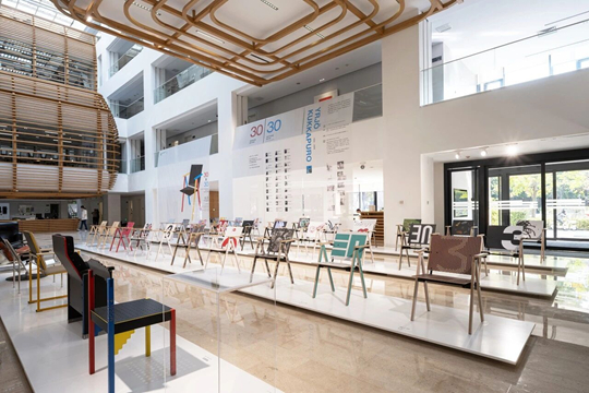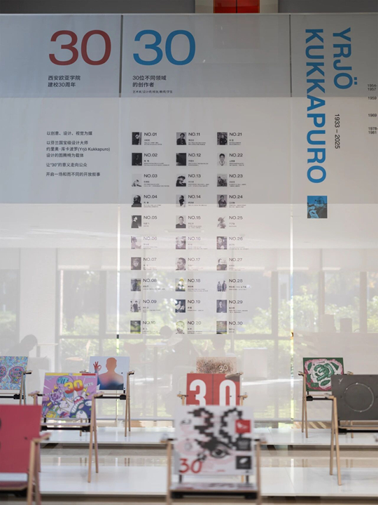 本次展覽以芬蘭國寶級設計師約里奧•庫卡波羅(Yrjo Kukkapuro)設計的圖騰椅為載體,30位創(chuàng)作者賦予30把椅子多樣的藝術語言,將數(shù)字“30”背后所蘊含的精神、寓意、活力與面貌拆解、重構,共同迸發(fā)出西安歐亞學院建校三十周年的創(chuàng)意圖景。