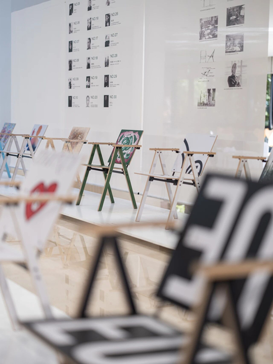 30把椅子采用繪畫、裝置、手作工藝等多元展現(xiàn)技法,在統(tǒng)一的形態(tài)之上,以其大膽的創(chuàng)意與突破常規(guī)的設計理念交織出豐富多元的創(chuàng)作美學。