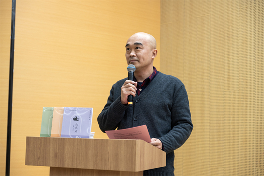 晉中信息學院創意寫作學院教師代表鐘小駿在發言中回顧了指導學生創作的歷程。他提到,從選題采風到反復修改,每一部作品都凝聚了師生共同的心血。他表示:“如果將《烏馬河文叢》比作是一條文學長河,每一位作者都是長河中美麗的浪花。文學創作是艱苦而美好的事業,同學們在挖掘山西文化的同時,也完成了一次次自我的成長與蛻變。”