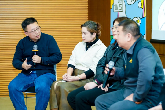 嘉賓們就“AI重塑創(chuàng)作流程”角度入手,探討如何在新時代創(chuàng)作中使用AI工具,以及AI工具的出現(xiàn)為行業(yè)帶來了怎樣的新發(fā)展。在互動討論環(huán)節(jié),網絡與新媒體專業(yè)高昱老師與嘉賓們就人才培養(yǎng)展開熱烈討論,并提出要通過校企合作,讓學生參與真實項目,從實戰(zhàn)中理解行業(yè)需求。