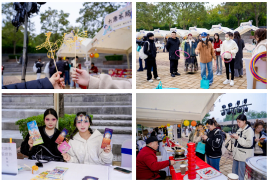 唐風游園會現(xiàn)場同學們體驗糖畫制作與套圈活動