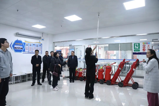 在隨后的實訓室參觀中,阿爾瑪古爾·卡納加托娃博士一行先后參觀了消防綜合實訓中心、城軌沙盤實訓室和動車組模擬駕駛實訓室等實訓場所。這些場所配備了中國主流高鐵車型的模擬駕駛系統,包括CRH380B模擬駕駛艙等先進設備。