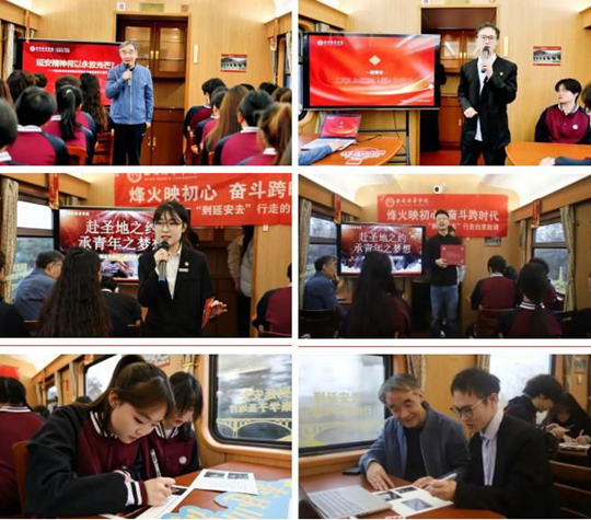 車輪滾滾,思政之燈暖意長明。西安培華學(xué)院“紅旗頌”創(chuàng)新理論宣講中心的老教授、青年教師、學(xué)生宣講員等,依托“理論精講+影像溯源+聲動共鳴”模式,在列車上開設(shè)思政課堂,馬克思主義學(xué)院銀齡教授李建森、青年思政名師張夢珅聚焦延安精神,解讀其核心內(nèi)涵與時代價值;“烽火映初心 奮斗跨時代”主題微課堂上,圖文影集串聯(lián)革命史實與精神脈絡(luò),以青春筆觸重溫培華自1928年創(chuàng)校以來的奮斗歷程,講述培華與民族同命運、與時代同步伐的故事,讓師生于紅色傳承中感悟革命先輩的奮斗精神,厚植家國情懷,做堅定信仰的踐行者。