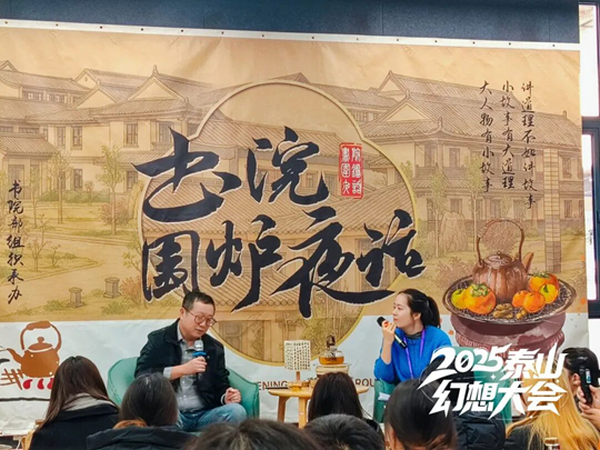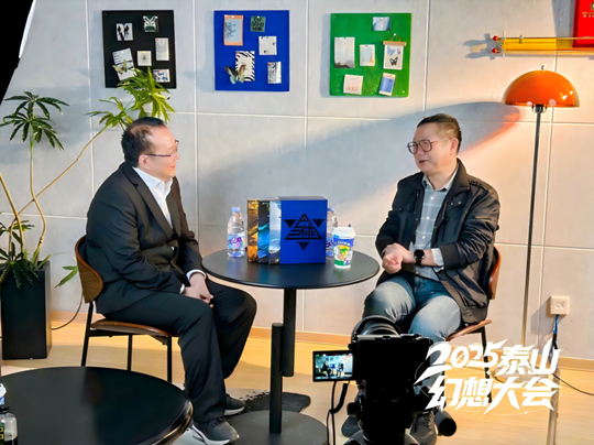隨后,泰山科技學院首席科幻作家楊平以專屬訪談形式先后與劉慈欣、王晉康等展開“蓬萊島語”一對一深度對話。訪談圍繞作家創作心路歷程、科幻創作實戰經驗、人類未來發展等多元話題展開。